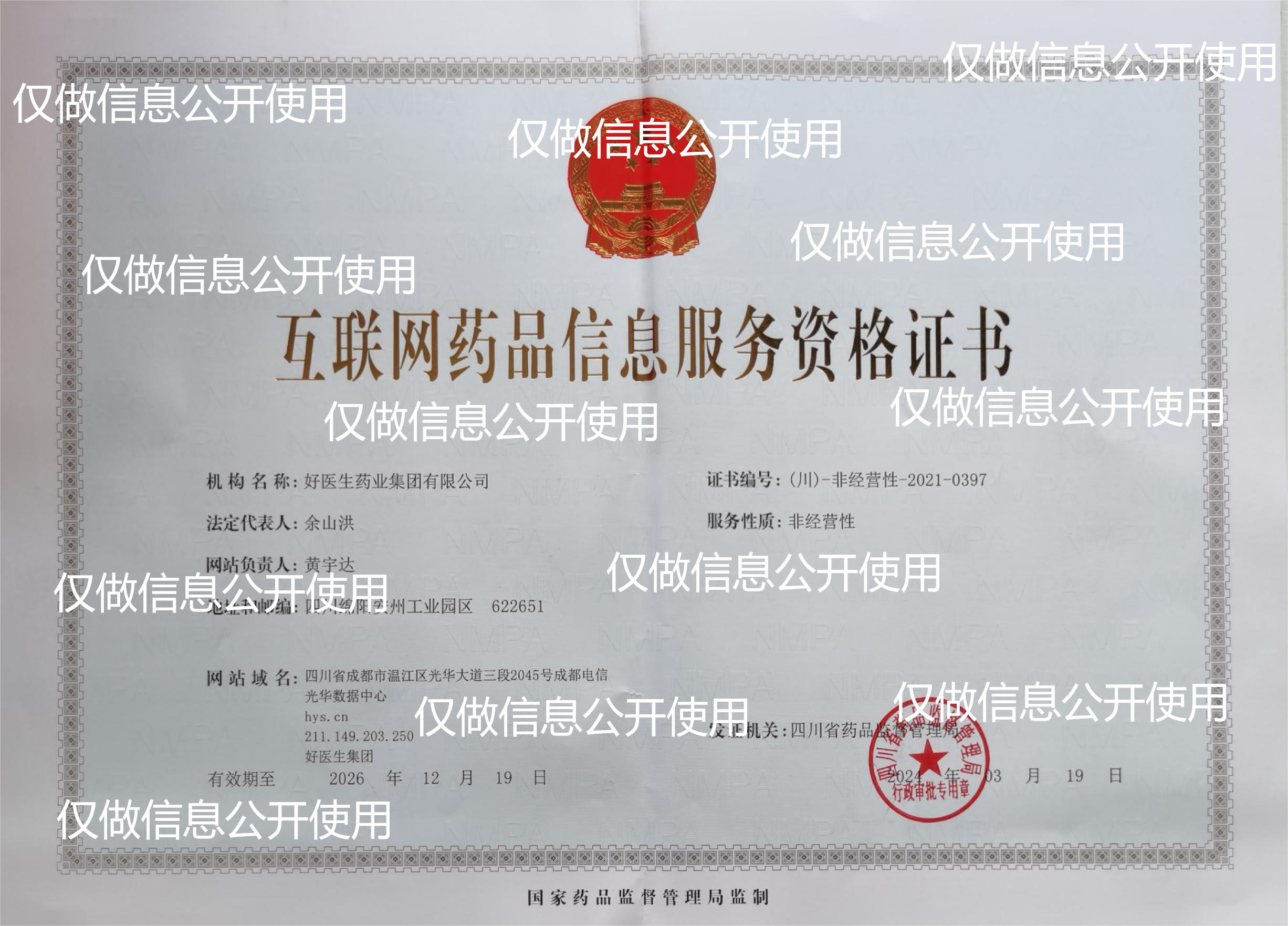 Internet Drug Information Service Qualification Certificate: (Sichuan) - Non operating -2021-0397Shu ICP Bei No. 06014542-1