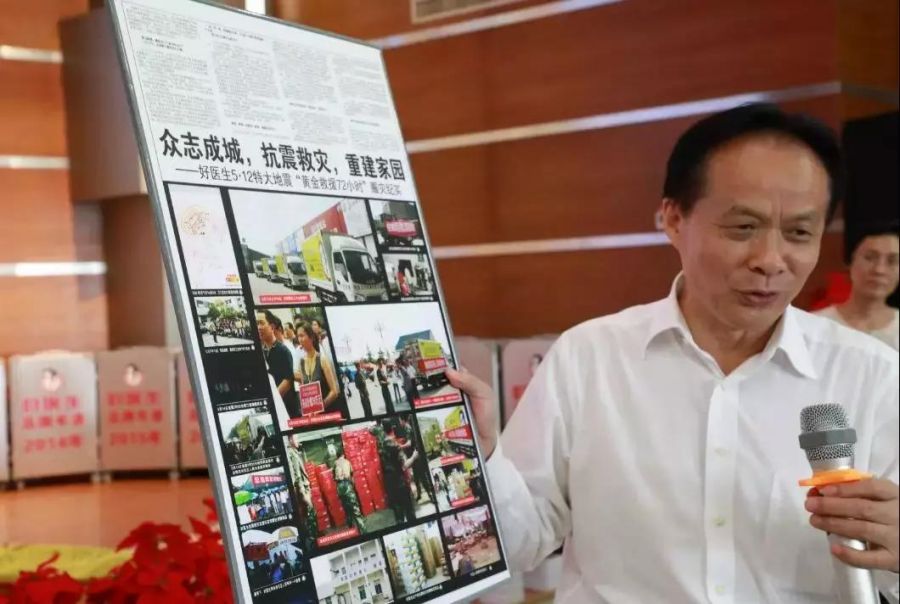 2008年5月12日,四川省阿壩藏族羌族自治州汶川縣境內(nèi)發(fā)生8.0級(jí)大地震。地震發(fā)生后,好醫(yī)生集團(tuán)積極生產(chǎn)自救,成為地震災(zāi)區(qū)第一個(gè)恢復(fù)生產(chǎn)的企業(yè)。大災(zāi)有大愛,集團(tuán)在自身?yè)p失達(dá)2711萬(wàn)元的情況下,向?yàn)?zāi)區(qū)累計(jì)捐款捐物430萬(wàn)元。同時(shí)還將綿陽(yáng)生產(chǎn)基地剛剛竣工的二期廠房無(wú)償提供給安縣中學(xué)高三學(xué)生復(fù)課并完成高考,為駐滇某集團(tuán)軍無(wú)償提供抗震救災(zāi)指揮部駐地。由于好醫(yī)生在抗震救災(zāi)中的優(yōu)秀表現(xiàn),榮獲了四川省紅十字頒發(fā)的“抗震救災(zāi)特別貢獻(xiàn)獎(jiǎng)”,榮獲中國(guó)醫(yī)藥企業(yè)管理協(xié)會(huì)、人民日?qǐng)?bào)、人民網(wǎng)評(píng)選的“中國(guó)醫(yī)藥企業(yè)社會(huì)責(zé)任貢獻(xiàn)獎(jiǎng)”。好醫(yī)生二期廠房當(dāng)時(shí)還獲得吉尼斯大世界頒發(fā)的“世界最大臨時(shí)教室”證書。